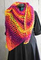My favorite thing to do with the fishnet shawl is to use fancy yarns to dress it up for formal occasions.